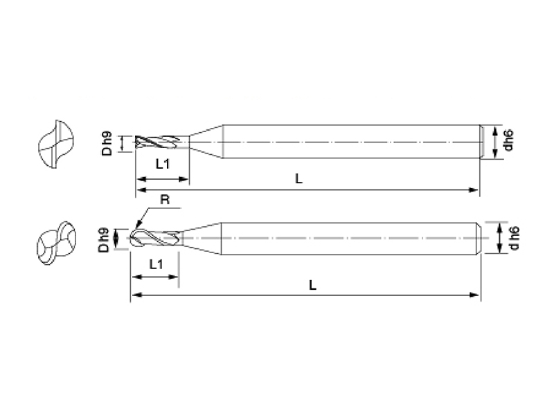 | 產(chǎn)品編號 ltem code | 刃徑(D h9) | 刃長(L1) | 柄徑(d h6) | 全長(L) |