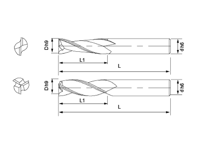 產(chǎn)品編號 ltem code | 刃徑(D h9) | 刃長(L1) | 柄徑(d h6) | 全長(L) |