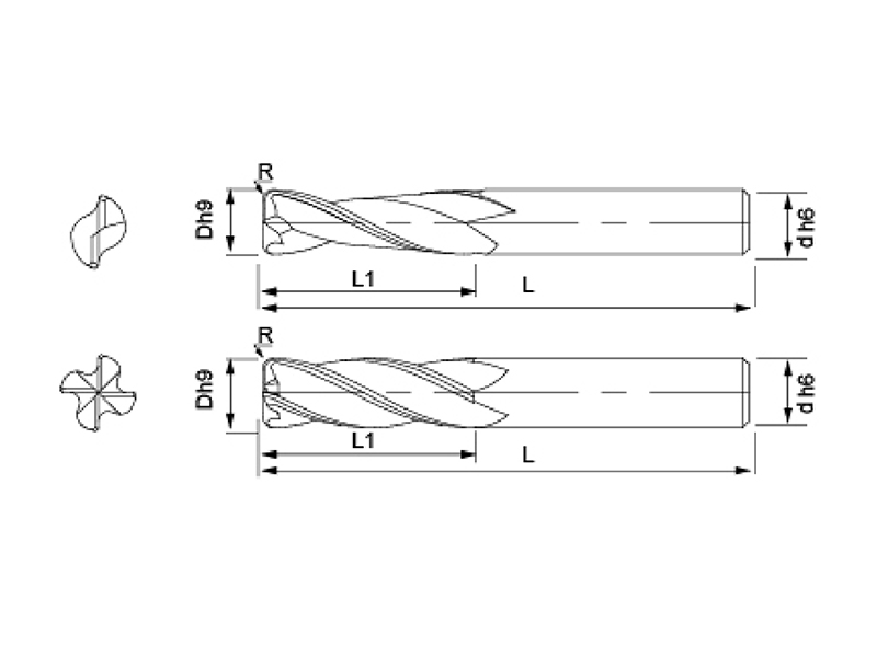 產(chǎn)品編號(hào) ltem code | 刃徑(Dh9) | R | 刃長(zhǎng)(L1) | 柄徑(dh6) | 全長(zhǎng)(L) |