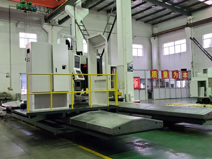 重型卡車和礦用卡車的承載車廂的承載梁,傳統(tǒng)采用分體加工、再依靠工裝進(jìn)行焊接和車廂總裝,存在變形大和上自動(dòng)組裝線困難的問(wèn)題;本產(chǎn)品為焊接車梁整體加工的全數(shù)控的雙面臥式加工中心,融合大型零件(12米長(zhǎng))雙面自動(dòng)化數(shù)控加工技術(shù)、工件自動(dòng)數(shù)控回轉(zhuǎn)翻身工藝,將環(huán)保準(zhǔn)干式切削等加工理念植入機(jī)床的結(jié)構(gòu)設(shè)計(jì),既解決了分體加工后組焊的變形問(wèn)題,又為車架的自動(dòng)化產(chǎn)線提供基準(zhǔn),達(dá)到減員增效和提高自動(dòng)化的目的。