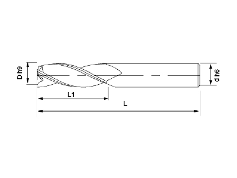 刃徑(D h9) | 刃長(L1) | 柄徑(d h6) | 全長(L) | 刃數(Z) |