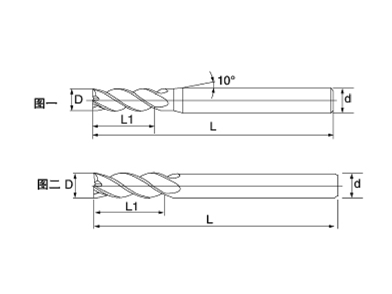 刃徑(D h9) | 刃長(zhǎng)(L1) | 柄徑(d h6) | 全長(zhǎng)(L) | 刃數(shù)(Z) | 避空直徑 | 有效長(zhǎng) |