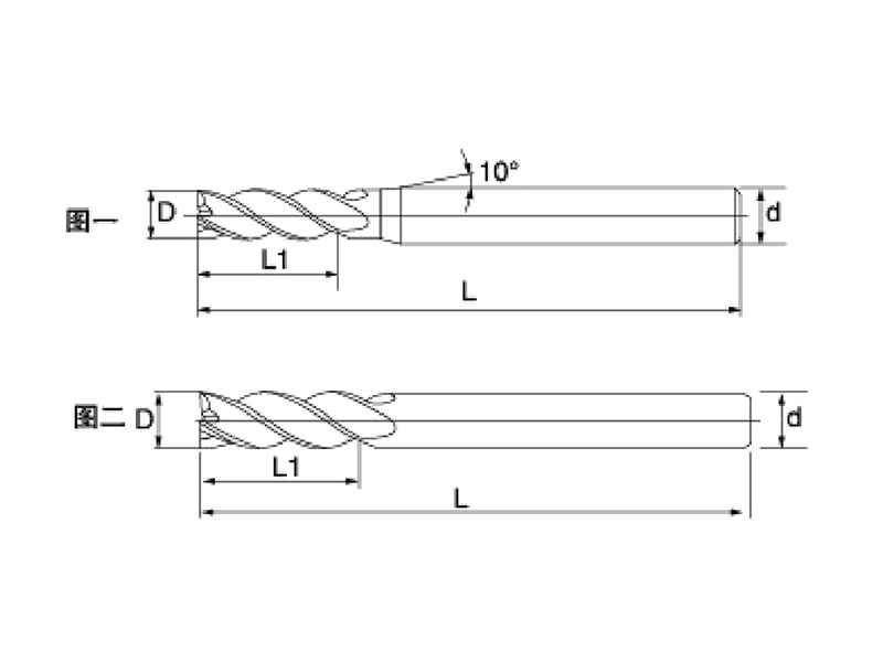 產品編號 Item Code | 刃徑(D h9) | 刃長(L1) | 柄徑(d h6) | 全長(L) |