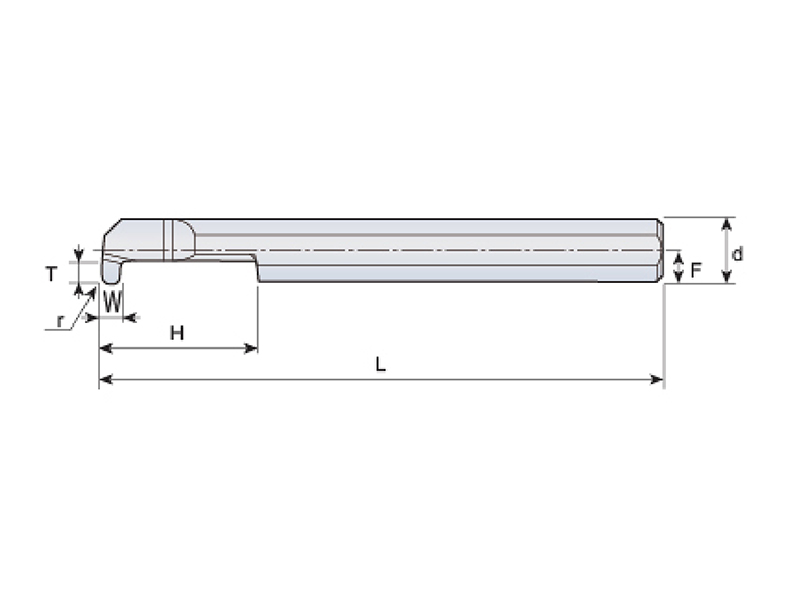 描述/訂貨號(hào) Description | 柄徑 d | 有效切深 H | 總長(zhǎng) L | 刀尖圓弧 r | 槽寬 W | 最大槽深 T | 刃尖到中心 F | 涂層 Coating |