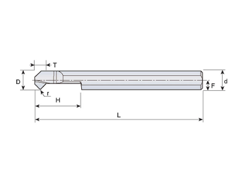 描述/訂貨號 Description | 刃徑 D | 柄徑 d | 有效切深 H | 總長 L | 刀尖圓弧 r | 最大槽深 T | 刃尖到中心 F | 涂層 Coating |