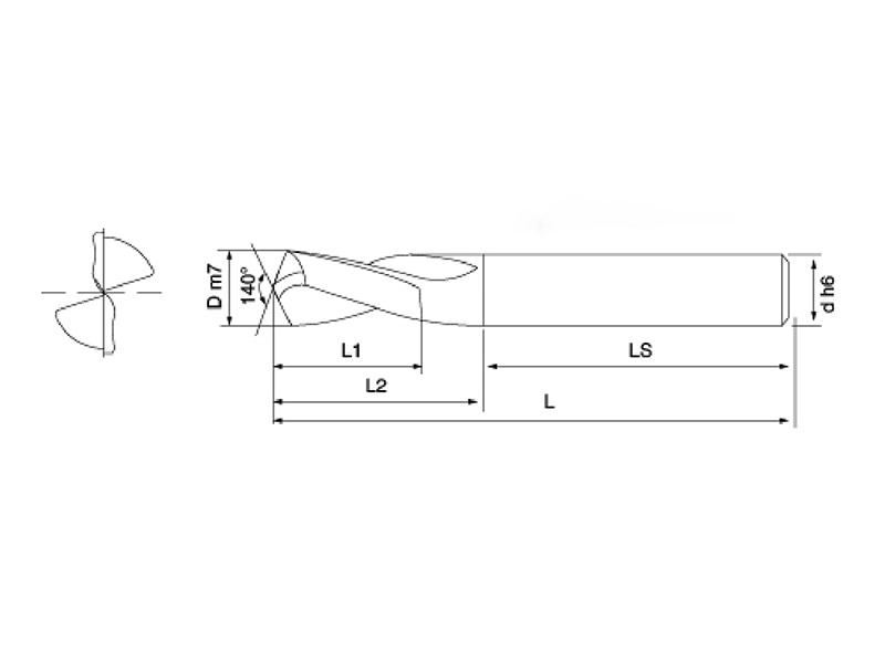 產(chǎn)品編號(hào) Item code | 刃徑(D m7) | 柄徑(d h6) | 全長(zhǎng)(L) | 刃長(zhǎng)(L2) | 有效刃長(zhǎng)(L1) | 柄長(zhǎng)(LS) |